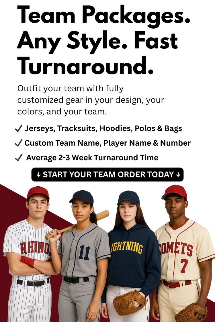 Home & Away Baseball Jersey PackageThis package includes a home and away jersey in any style from our website with numbers on the front and back, a team name on the front, and player name on the back all included via our sublimation method. Minimum order of 5 required...