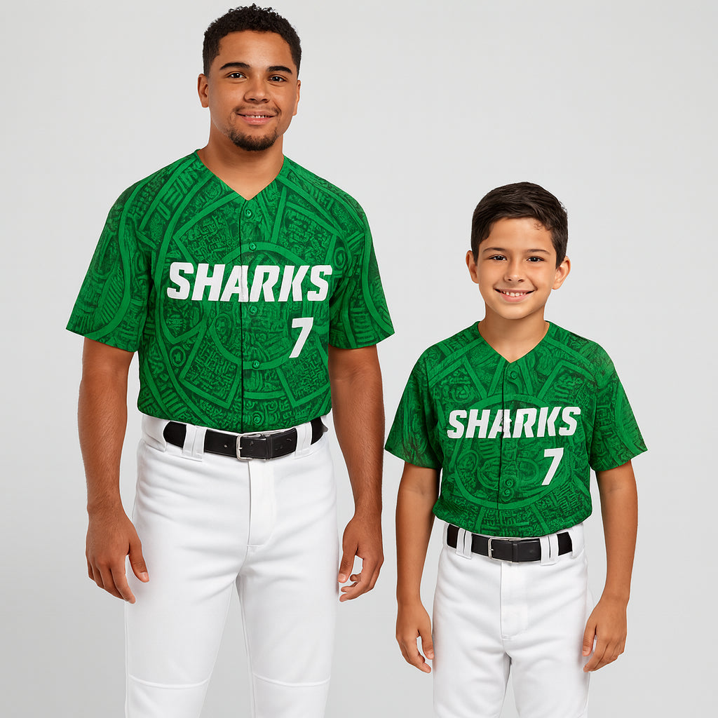 • Includes: One jersey, full button or two button, team name, player name and number.